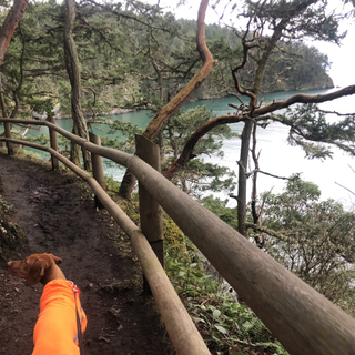 Because of cliffs and laws, Zax had to be on leash for the majority of the hike but let him off at beaches to play a little. He had some zoomies and then on the way back, I noticed his back left leg having a slight limp so we came home and skipped the next hike. We are at home resting and no signs of a limp now. We may have just overdid it